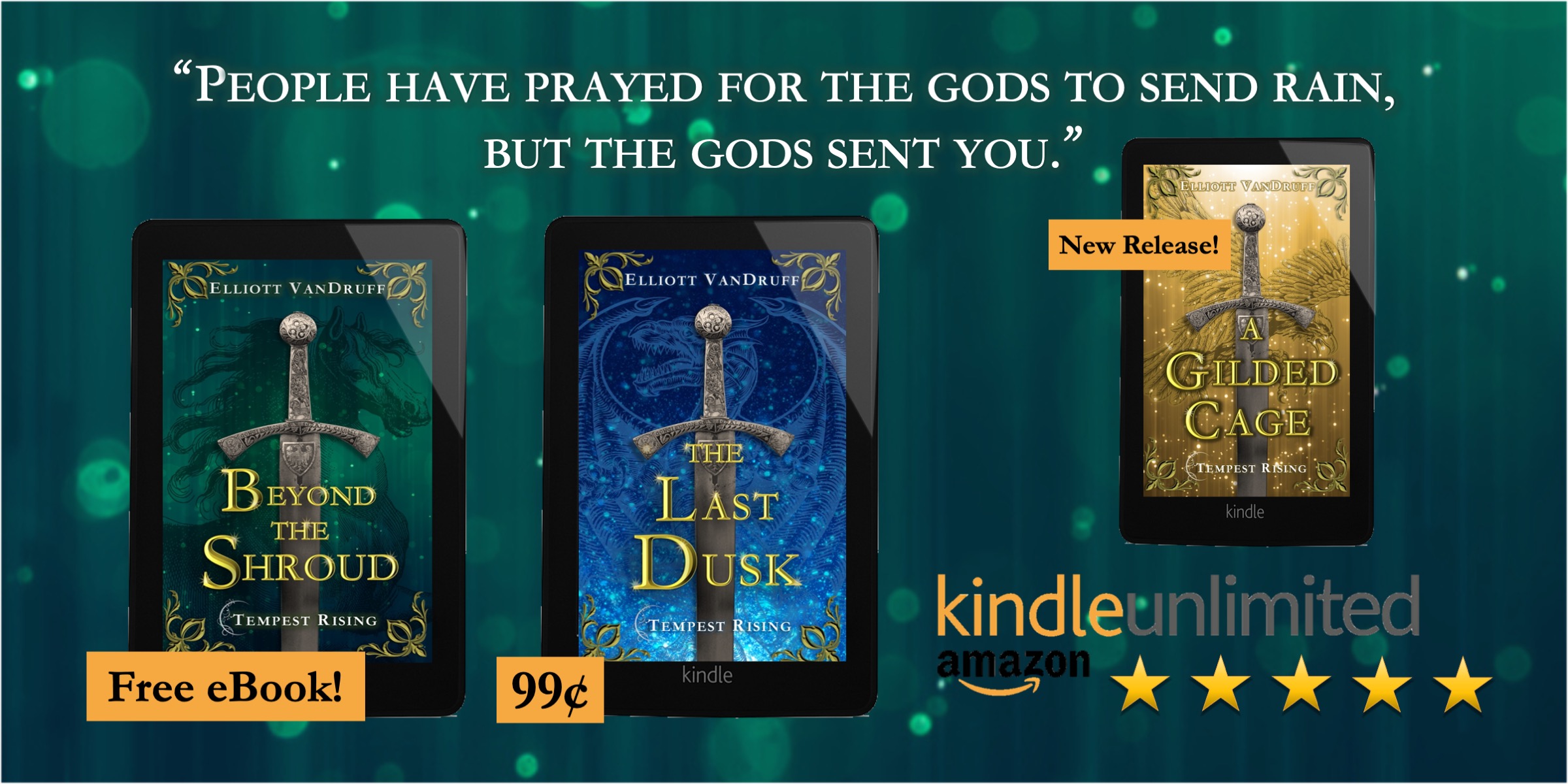 Book 1, Beyond the Shroud, is available for free. Books 2 and 3, The Last Dusk and A Gilded Cage, are discounted to $0.99! Snatch them up today!